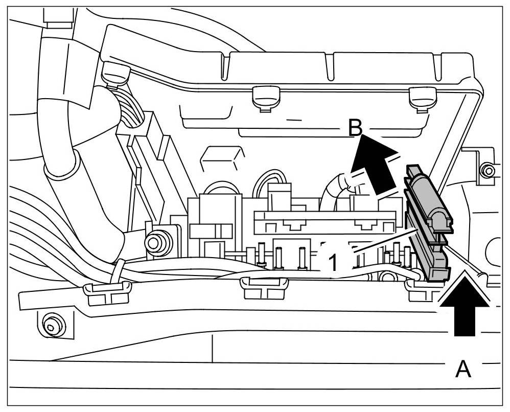 6. Close the main fuse box. Make sure that the three clips -1- engage securely.