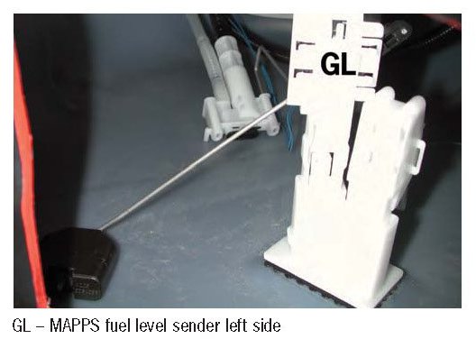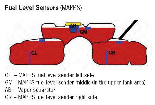 There are 3 new MAPPS fuel level sensors installed in the fuel tank for measurement of the fuel level.