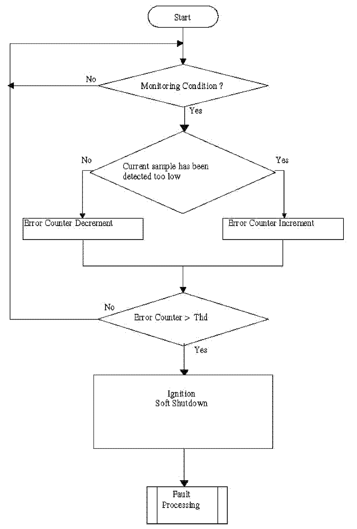 The diagnosis is made by an analogue acquisition of current feedback from the coil. If this current feedback is below than a calibratable threshold, soft shutdown is detected.
