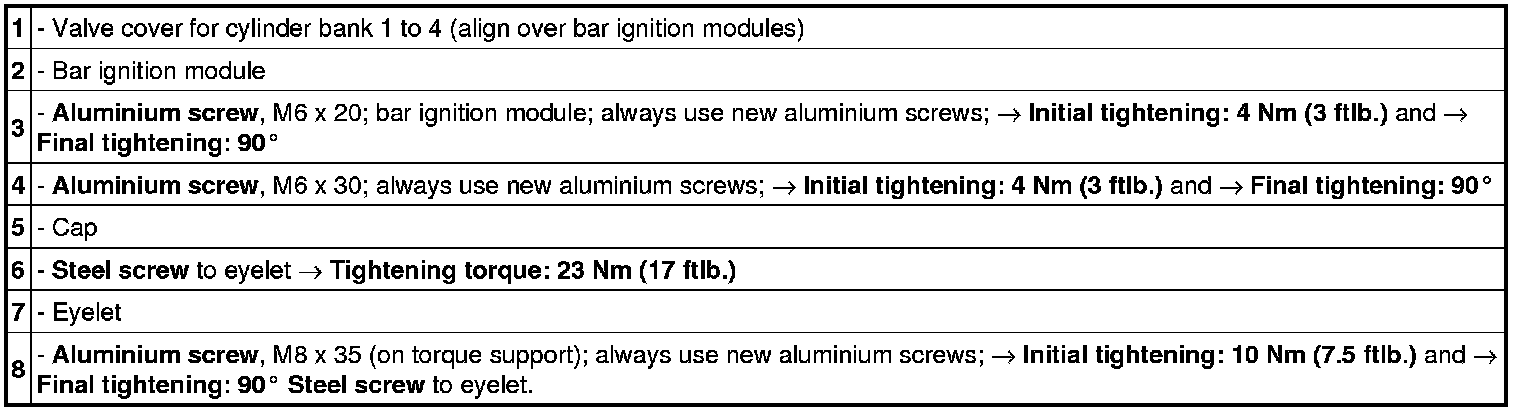 Tightening sequence for valve cover for cylinders 5 to 8