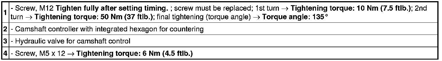Tightening sequence for valve cover for cylinders 1 to 4