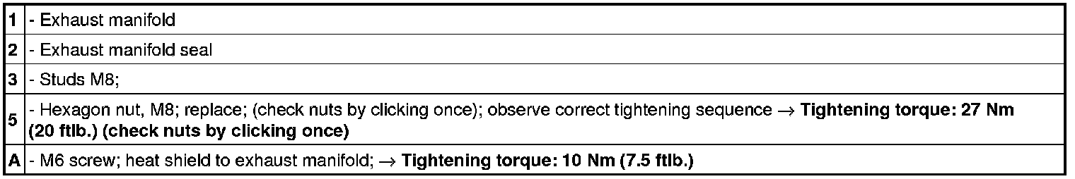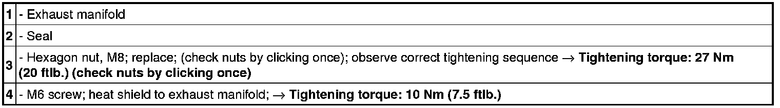 Tightening sequence for exhaust manifold on naturally aspirated engine, cylinders 1 to 4
