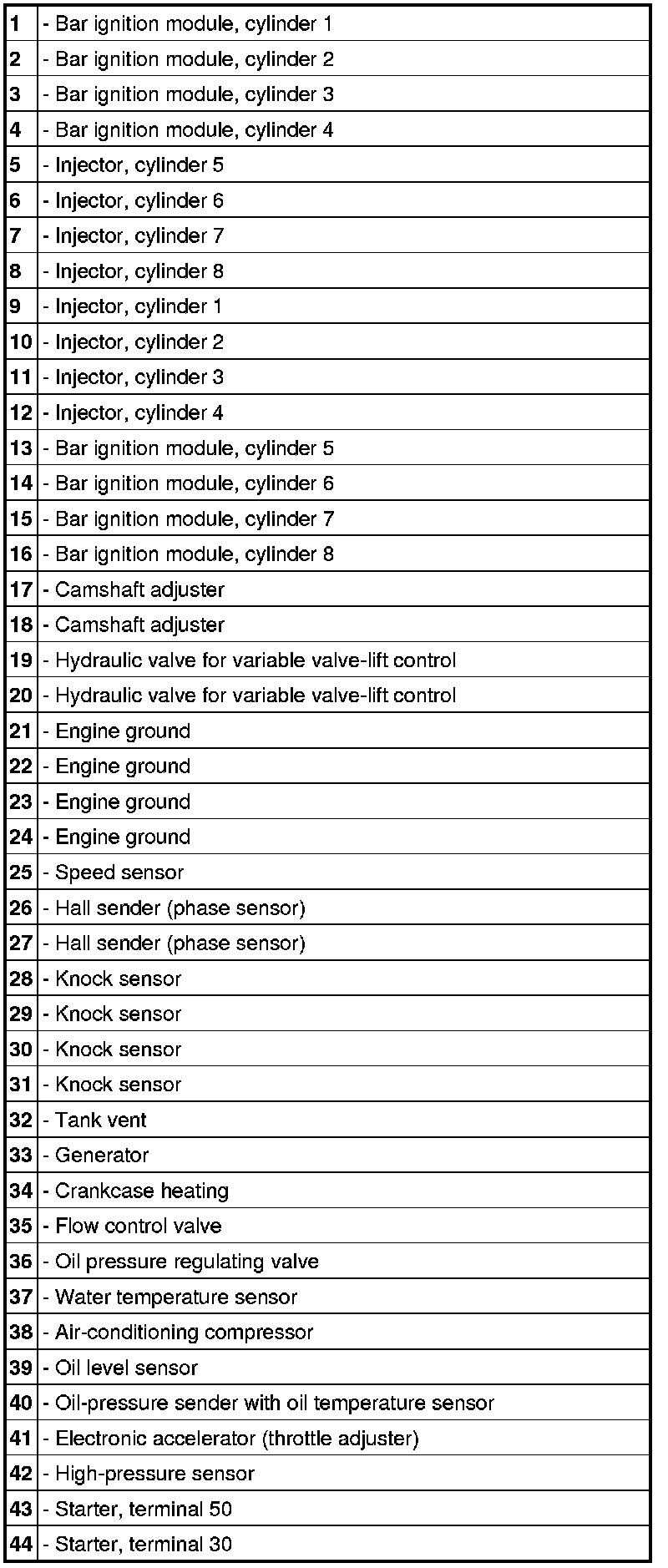 Wire harness assignment, naturally aspirated engine