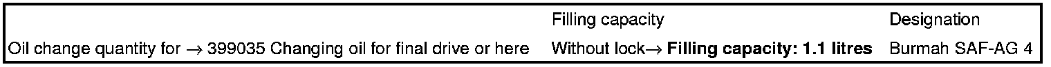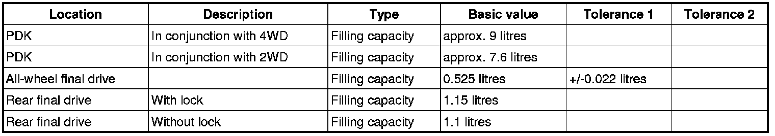 Technical values for rear final drive