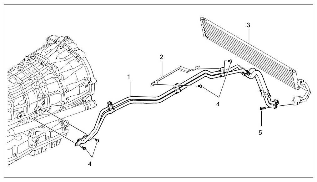 1. Unscrew fastening screws securing line for ATF cooling to transmission -4-.