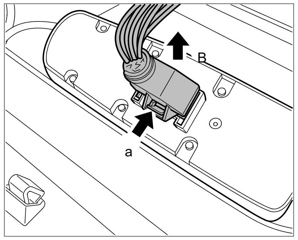 1. Release the electric connector at the switch -a- and remove it -arrow B-.