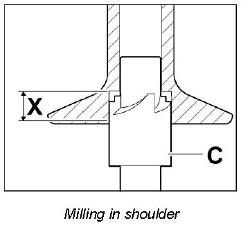 Mill out bore hole up to dimension X using spot facer C. See Table. Milling in may only be performed using the tool contained in the Porsche special tools. Use an electronically controlled power drill set to a speed of approx. 250 rpm (1/min) for milling in.