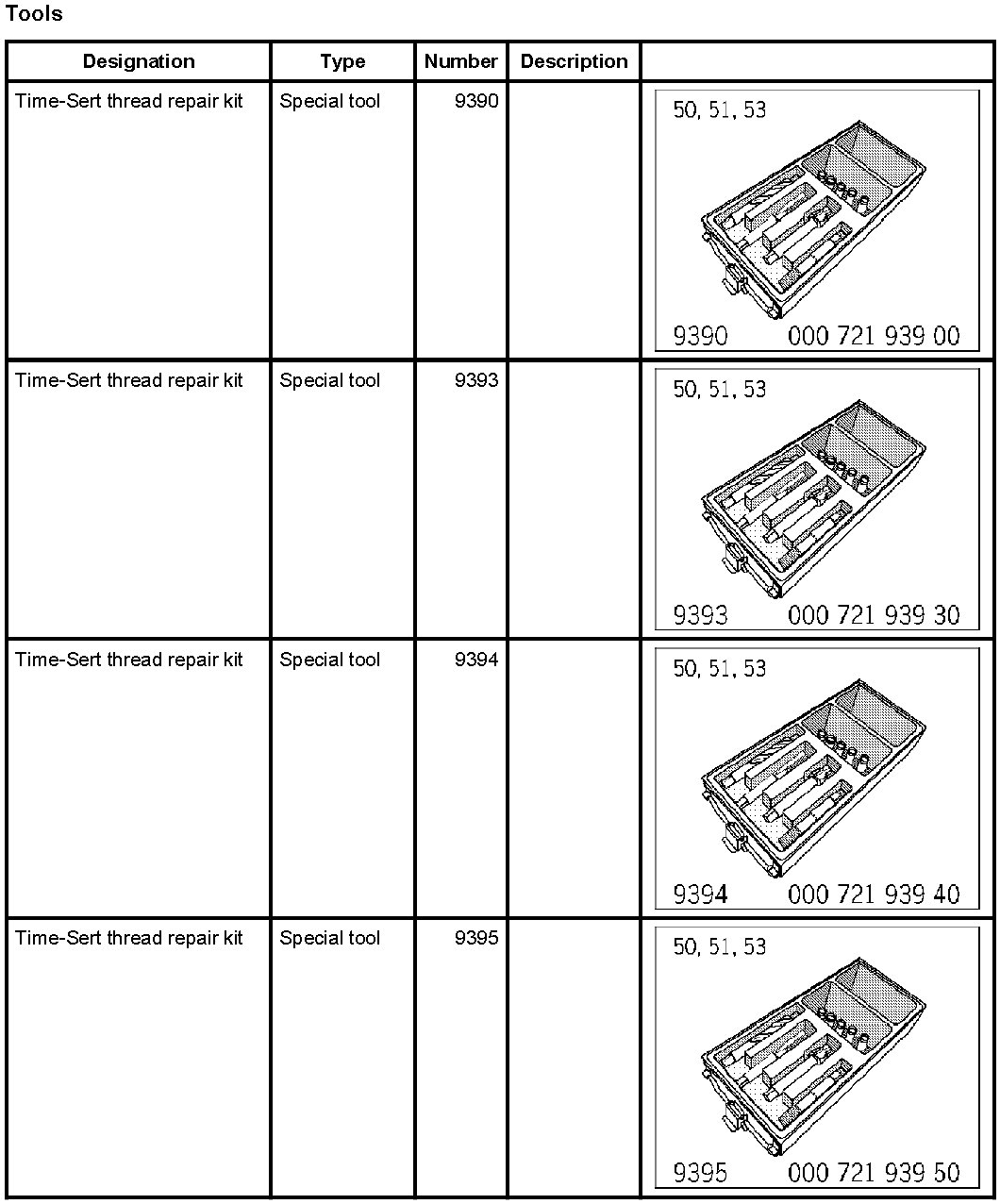 - Thread repairs can only be carried out using the Time-Sert thread repair system.