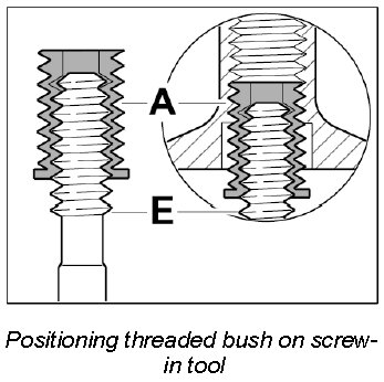 Screw threaded bush A in fully (note bush length classification) using the screw-in tool E.