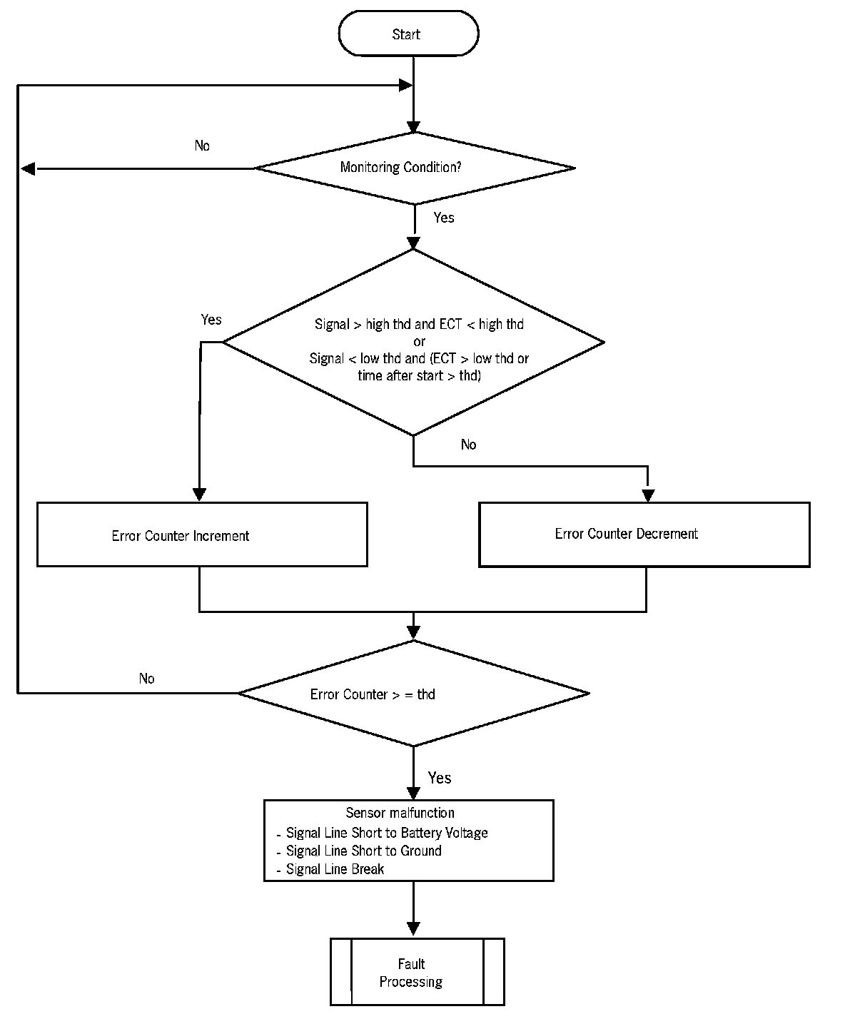 The diagnosis basically involves the comparison of the oil temperature sensor-signal to a plausible temperature range based on ECT sensor signal.