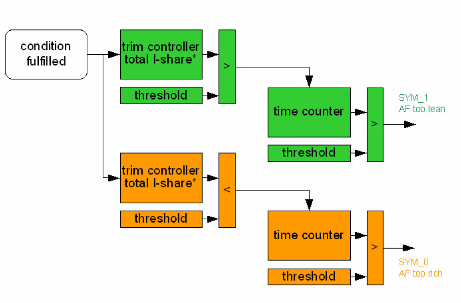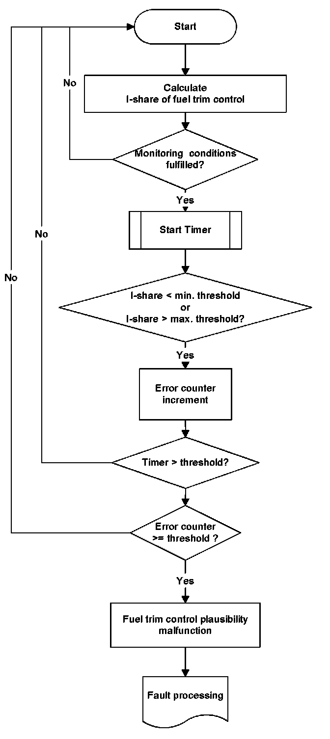 The trim control plausibility monitoring detects a high deviation of the I-share of lambda trim control. If it exceeds given thresholds the malfunction is detected.