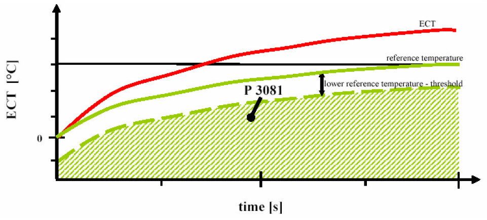 (engine coolant temperature - reference temperature) > threshold