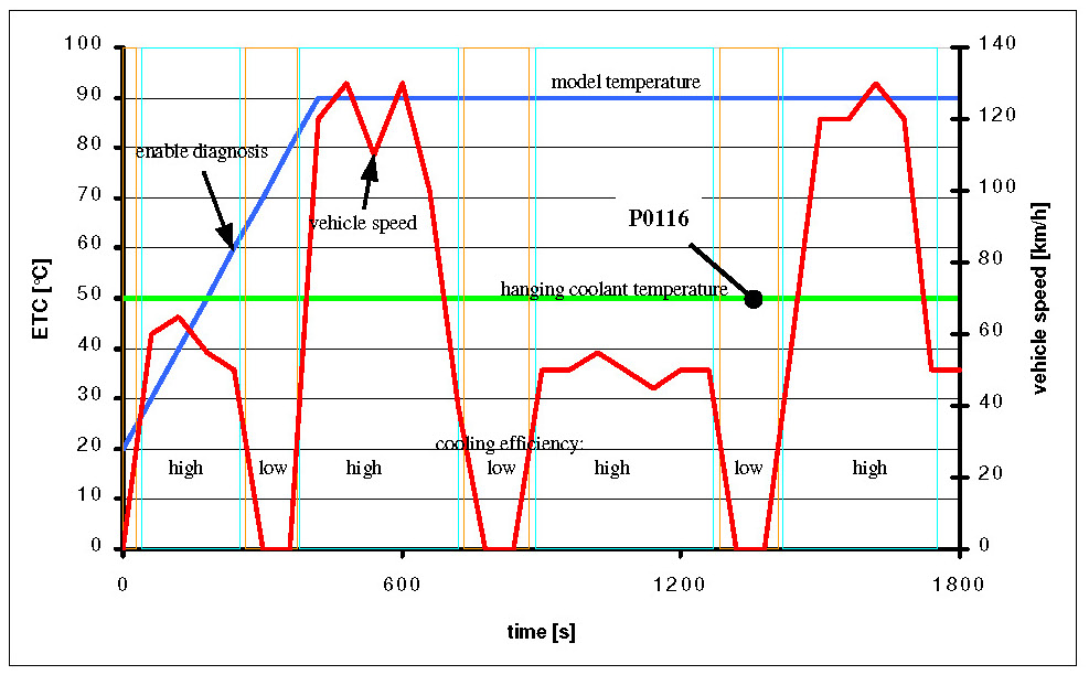 Diagnosis threshold min. < engine coolant temperature < Diagnosis threshold max.