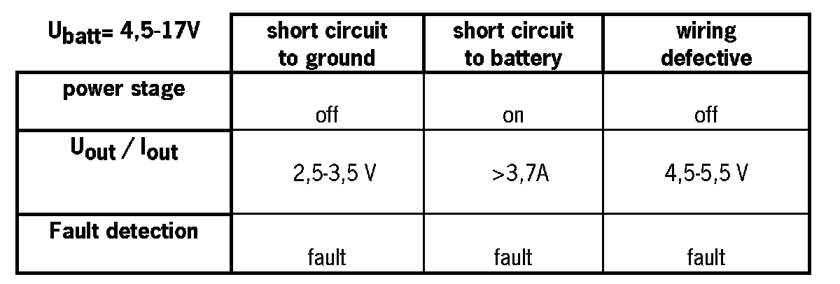 The IC has a binary diagnostic line (e.g. CJ920 2.2 A). The logic circuit within the IC can separate the type of fault to a short circuit to minus, an open line, or a short circuit to plus. The check result will be sent to the ECM via diagnosis line.