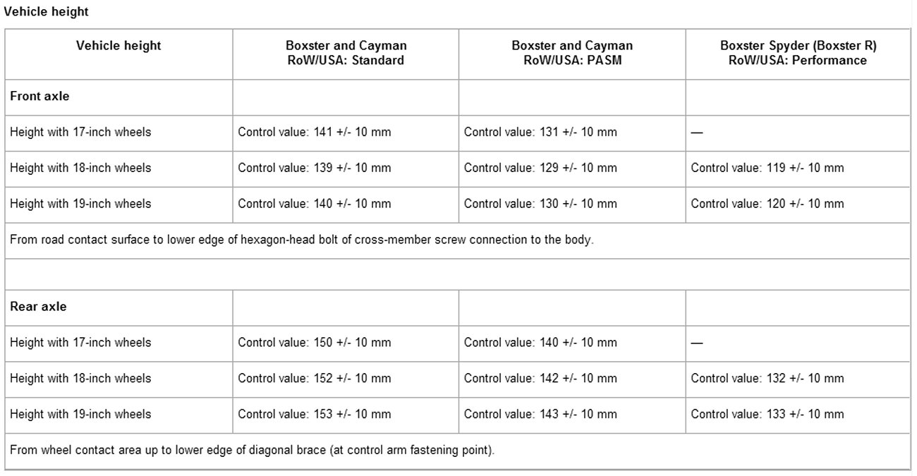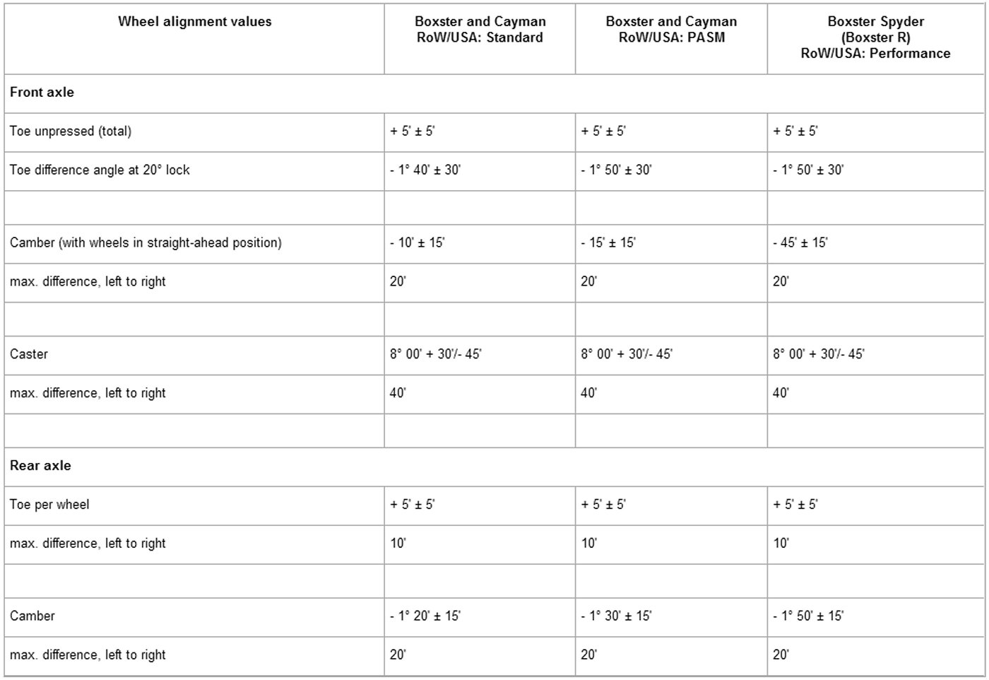 Adjustment values for suspension alignment