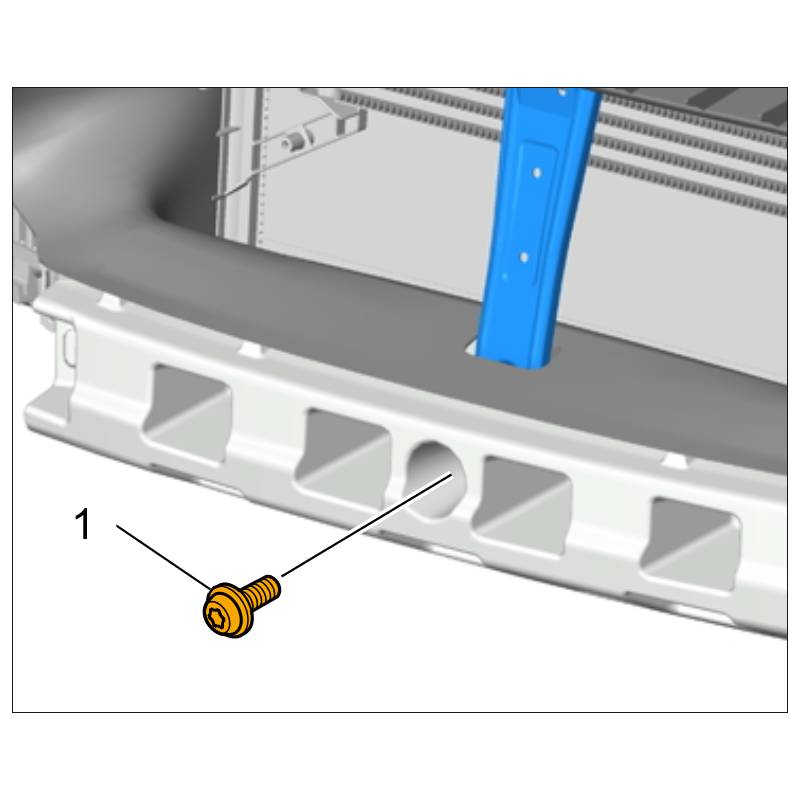 4.2. Tighten fastening screws -2- for the bumper to -> Tightening torque: 12 Nm (9 ftlb.)+/-1 Nm (+/-0.5 ftlb.).