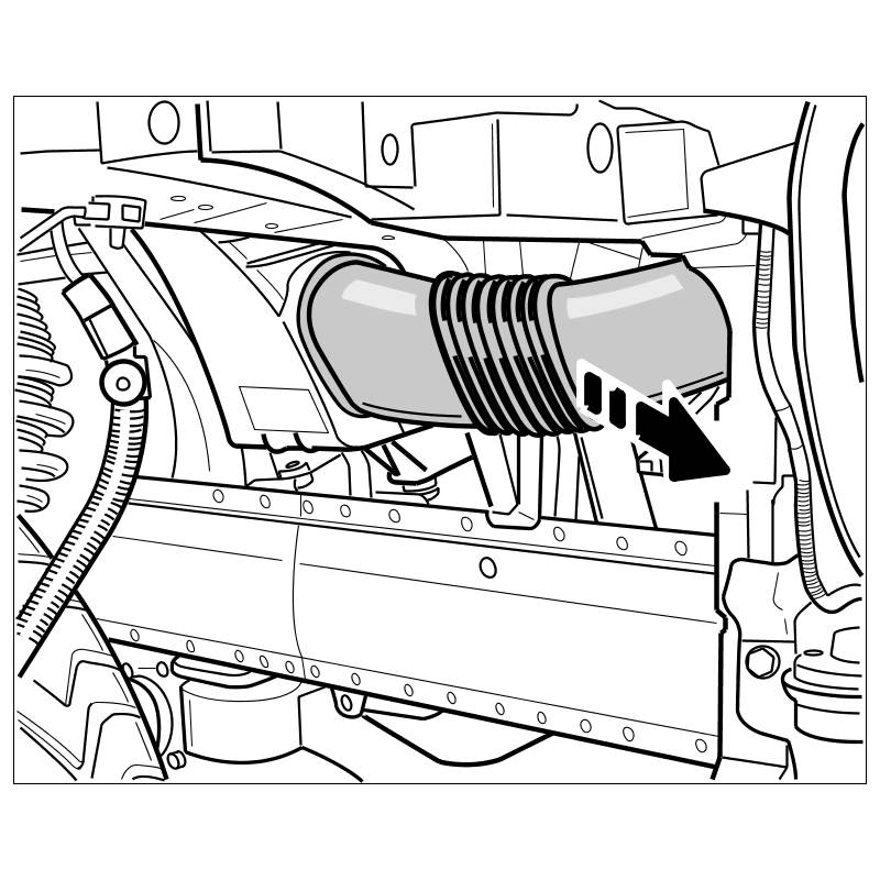 1. Pull air intake pipe (two on the V8) and sound absorber forward out of the lock carrier.