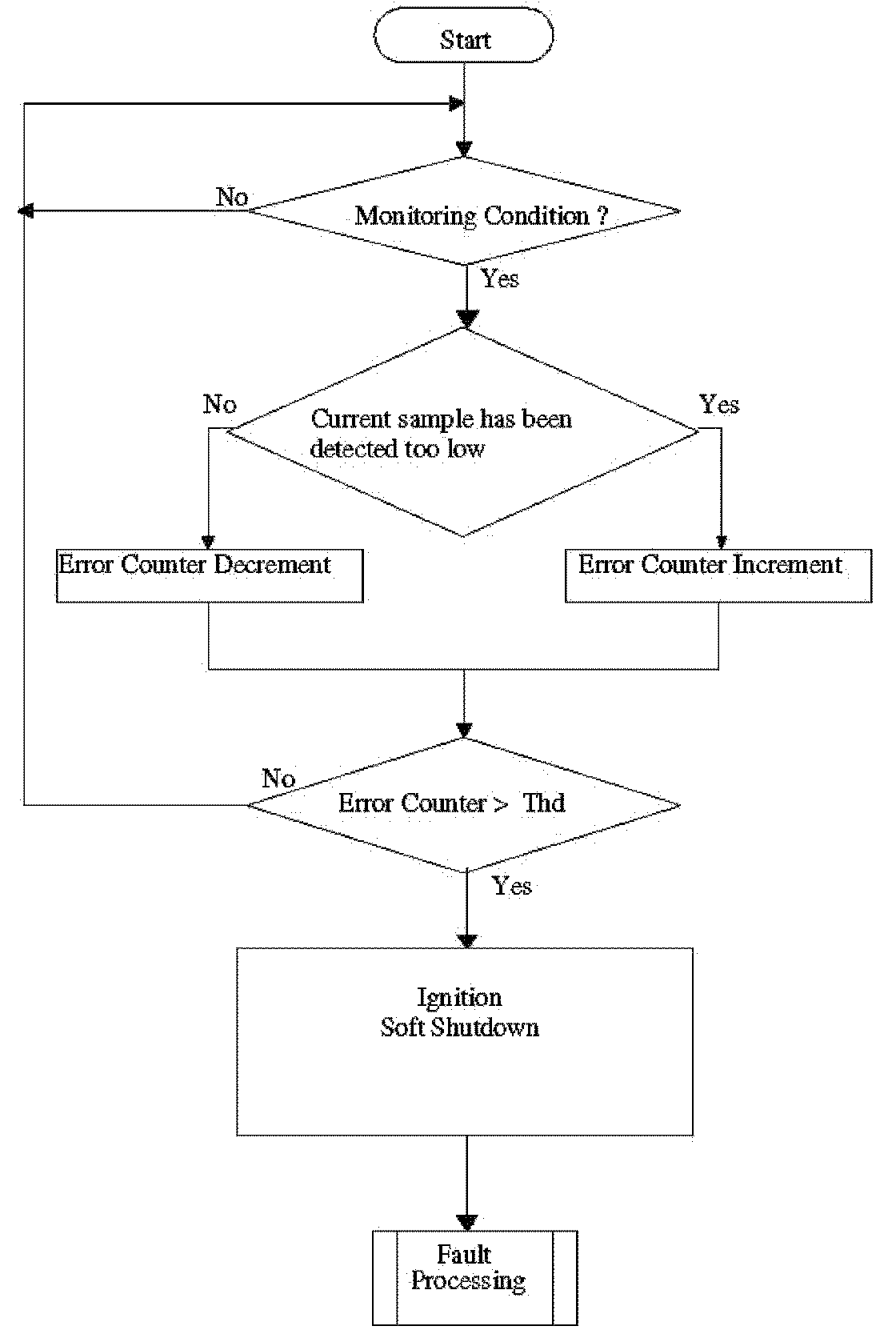 The diagnosis is made by an analogue acquisition of current feedback from the coil. If this current feedback is below than a calibratable threshold, soft shutdown is detected.