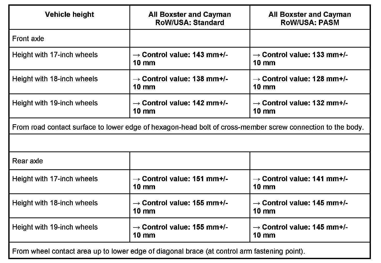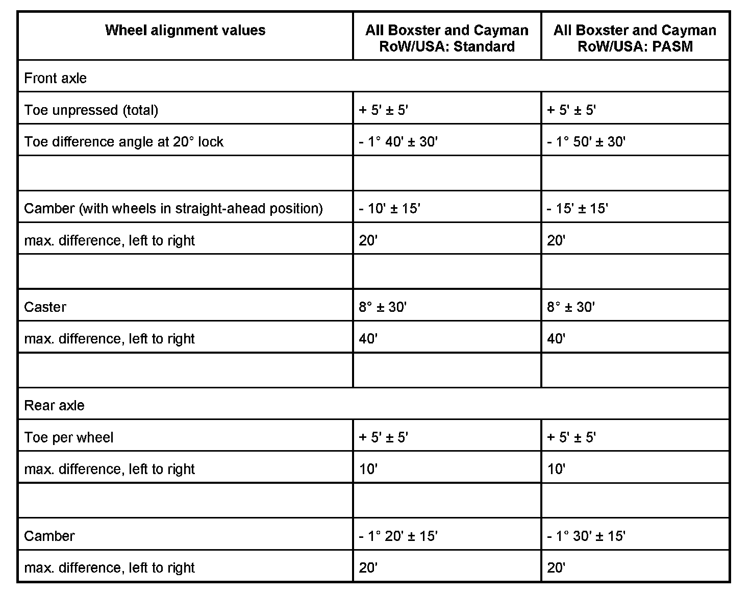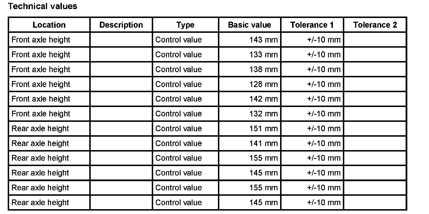 Adjustment values for suspension alignment