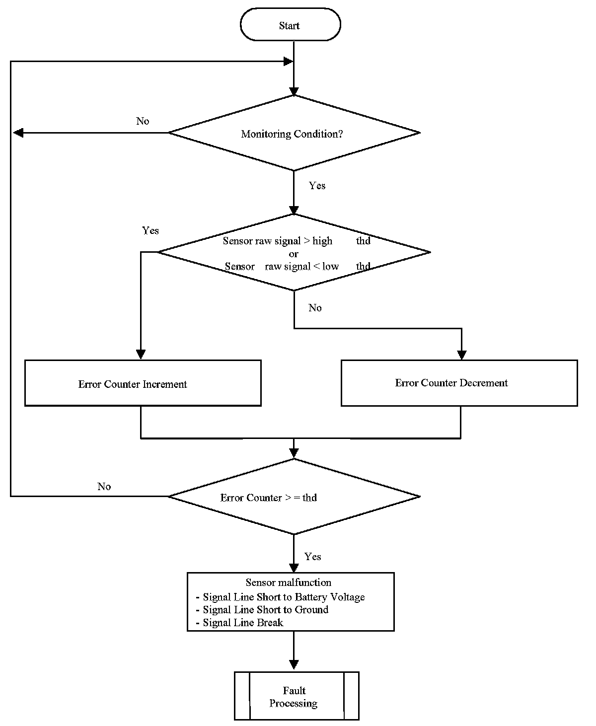 - Sensor signals out of a defined range are regarded as circuit malfunctions shorted to BATT, GND or Open circuit.