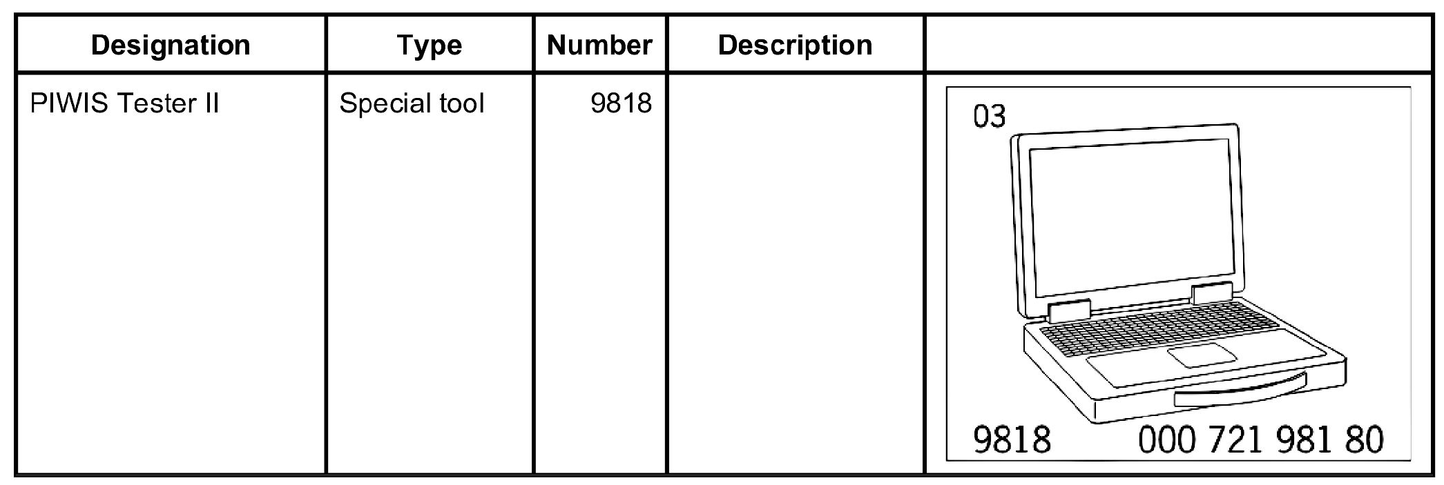 -> After working on wheel suspension parts, when replacing the steering-angle sensor and after changing the wheel alignment values, calibrate the steering-angle sensor using PIWIS Tester II 9818.