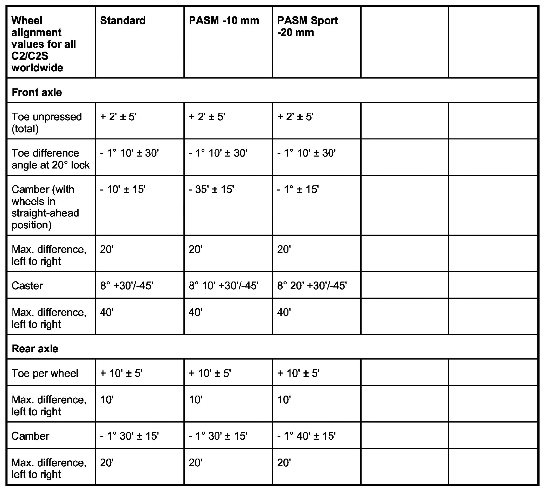 - The toe-difference angle value and castor value are influenced by the vehicle height. For this reason the measured result must be evaluated accordingly. No action is necessary in the case of small deviations from the required value (toe difference angle and caster) as long as the value to the right and left is almost the same.