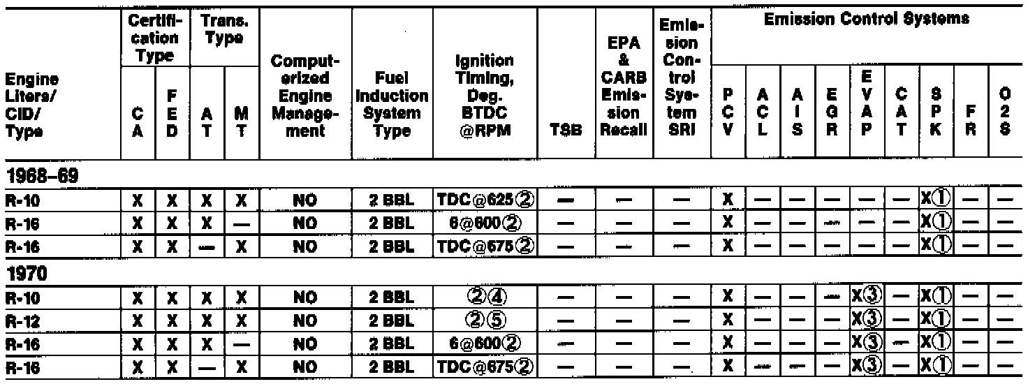 10 - R-5 TDC @ 850 RPM (800 RPM on High Alt models); R-12 w/MT, 7 degrees BTDC @ 850 RPM (800 RPM on Calif. models), 7 degrees BTDC @ 650 RPM w/AT