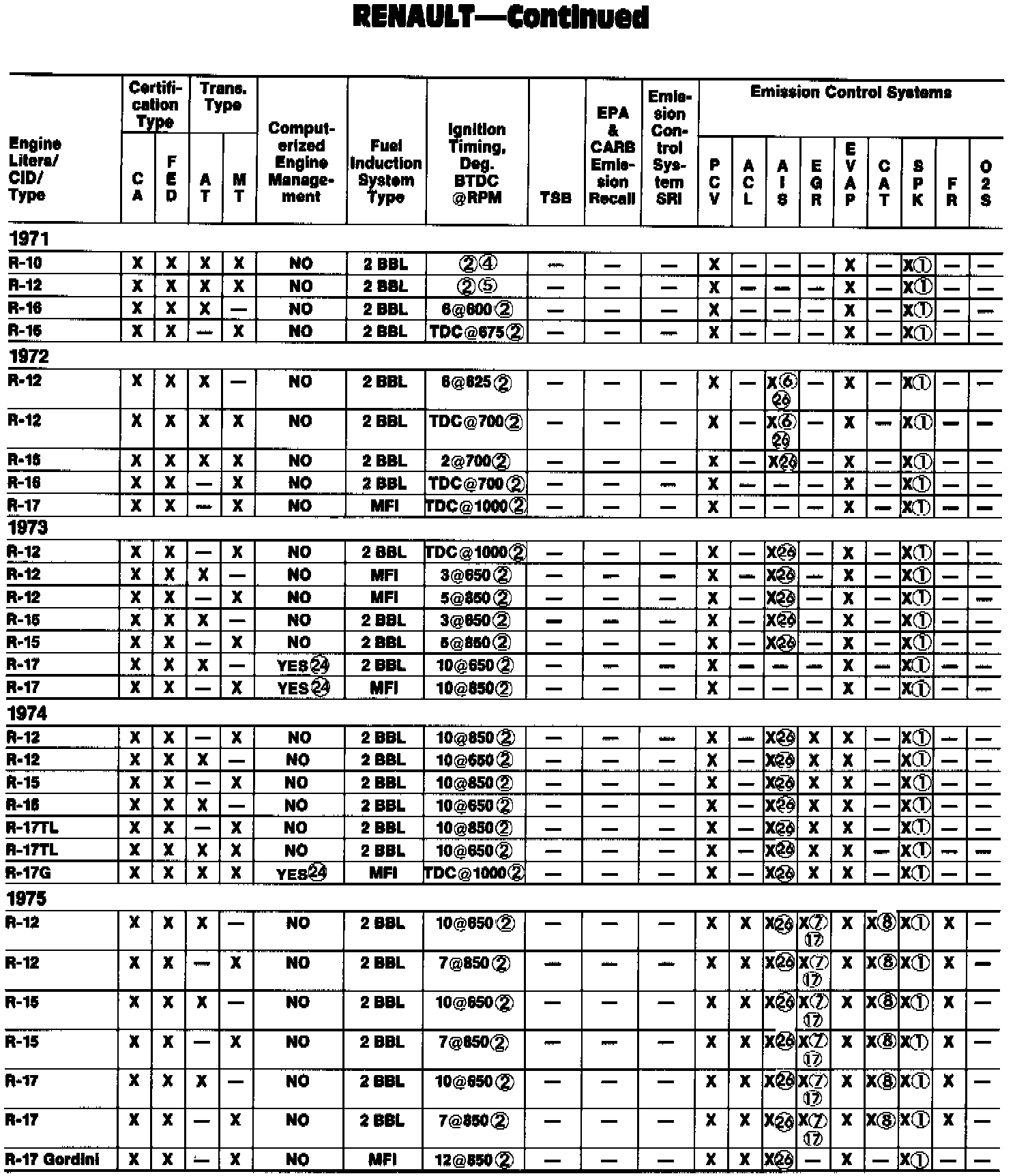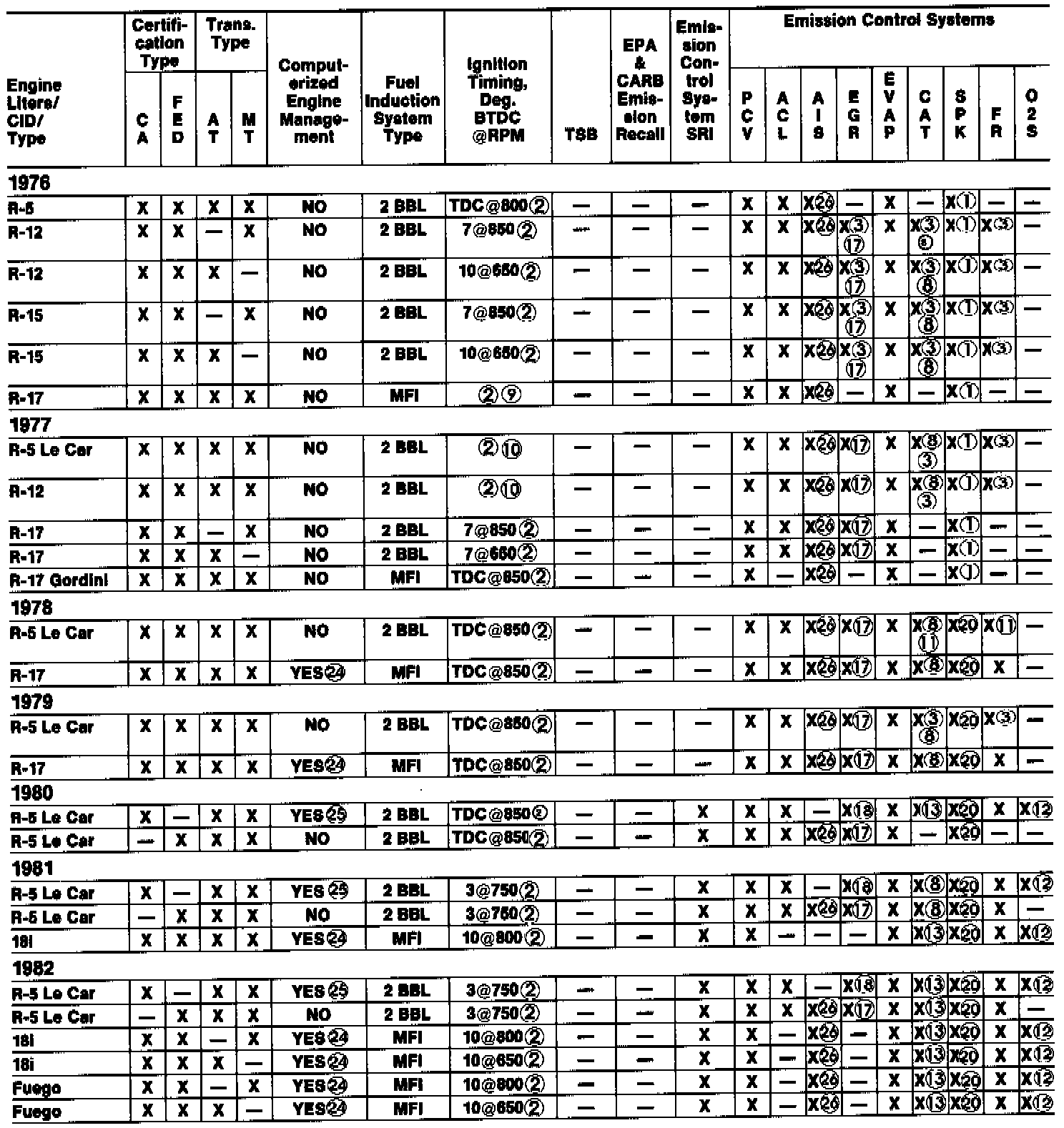 9 - R-17TL w/AT, 7 degrees BTDC @ 650 RPM; R-17 Gordini, 12 degrees BTDC @ 850 RPM.