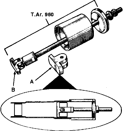 2. Remove large diameter outer bushing using puller adapter A, then remove smaller diameter bushing with adapter B, Fig. 3.