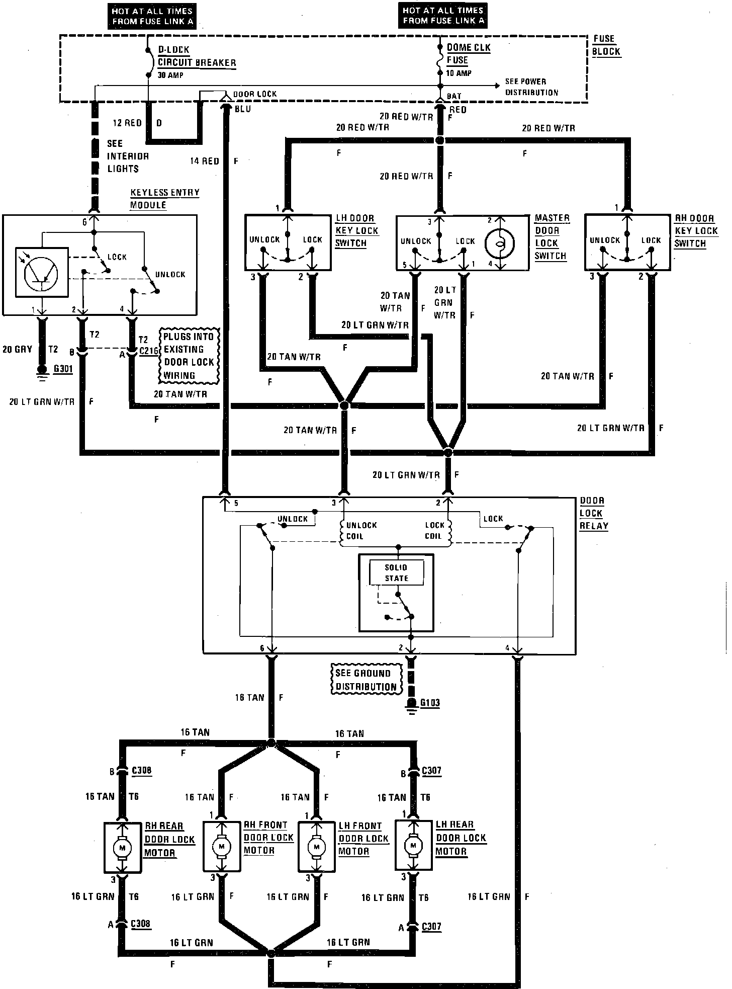 Fig. 20 Keyless entry & power door lock wiring circuit: