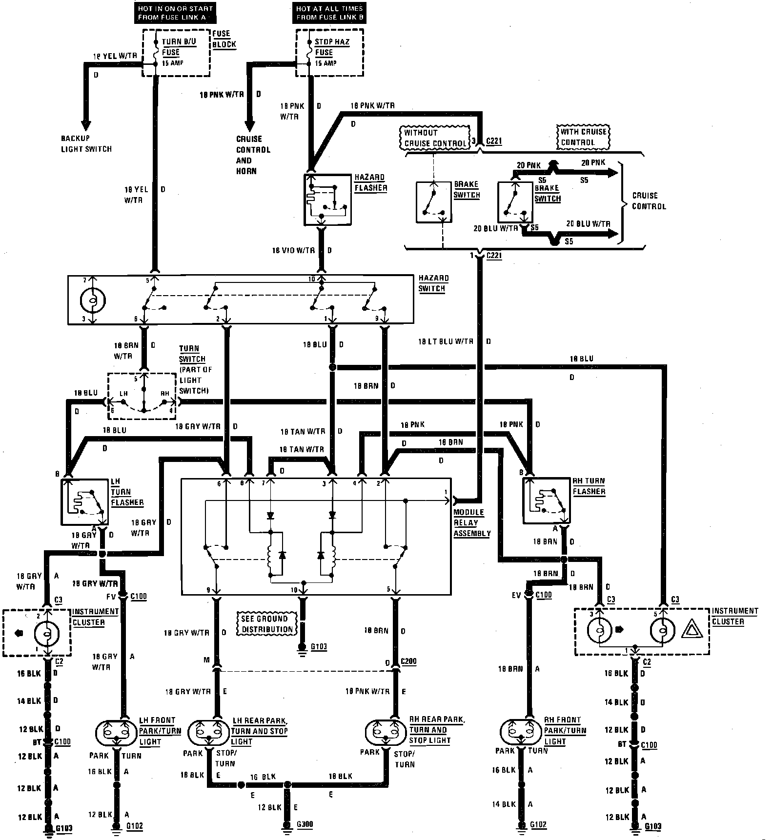 Fig. 15 Hazard, stop, & turn signal lights wiring circuit: