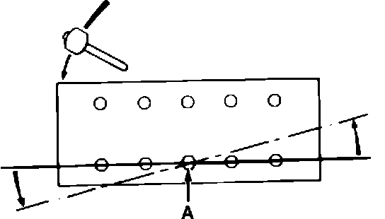 13. To remove cylinder head, rotate cylinder head around centering dowel A, Fig. 3, by tapping each side of cylinder head with a plastic mallet.