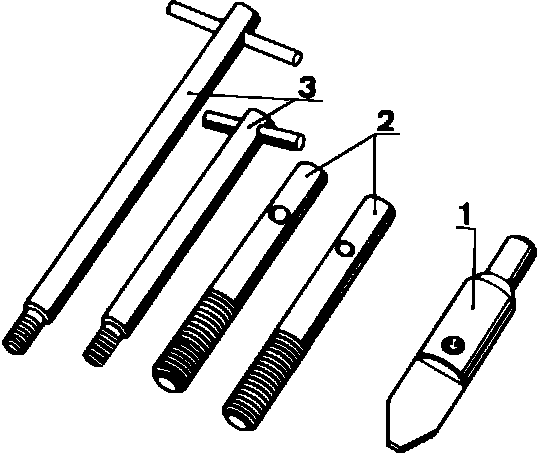 10. Remove locating studs with stud remover (3), Fig. 6.