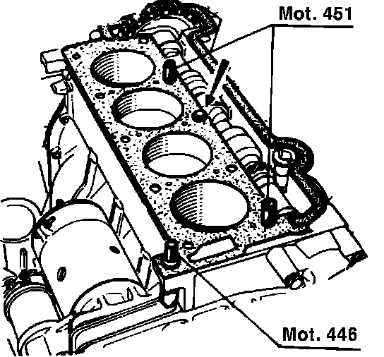 4. Install Mot. 451 studs, Fig. 7, tightening studs until ball contacts cylinder head gasket and holds gasket in place on cylinder block.