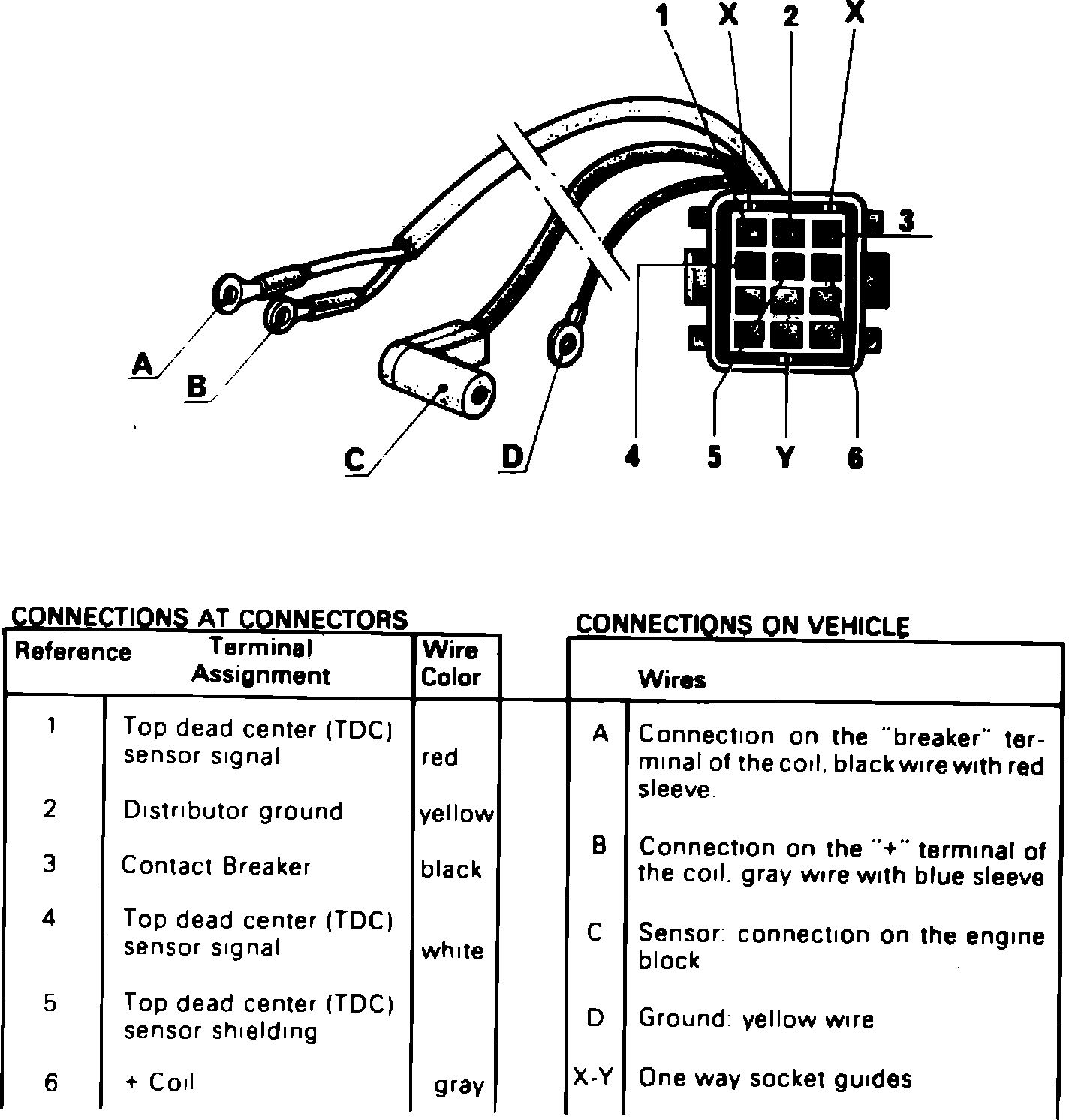 The diagnostic connector, Fig. 6, may be used to perform the following vehicle checks: primary ignition circuit voltage, initial ignition timing advance setting, centrifugal and vacuum advance curves and engine RPM. To replace the diagnostic connector, proceed as follows: