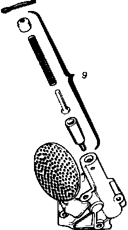 3. Remove oil pump pressure relief valve (6) from pump housing, Fig. 37.