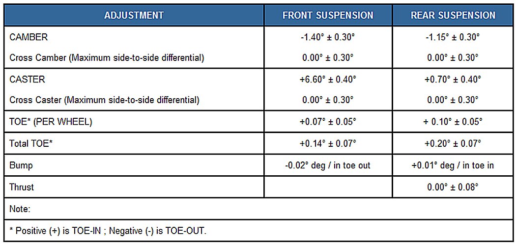 NOTE: All wheel alignments are to be set with the vehicle at CURB HEIGHT.