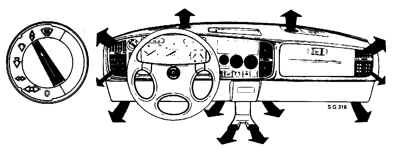 - As from 1984 models, all vents closed in cars with air conditioning.