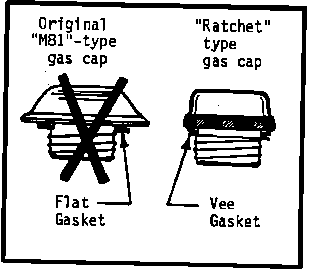 M81-83-1/2 Models - if car is fitted with the Saab accessory locking gas cap (also ratcheting-type), replace only if not sealing.