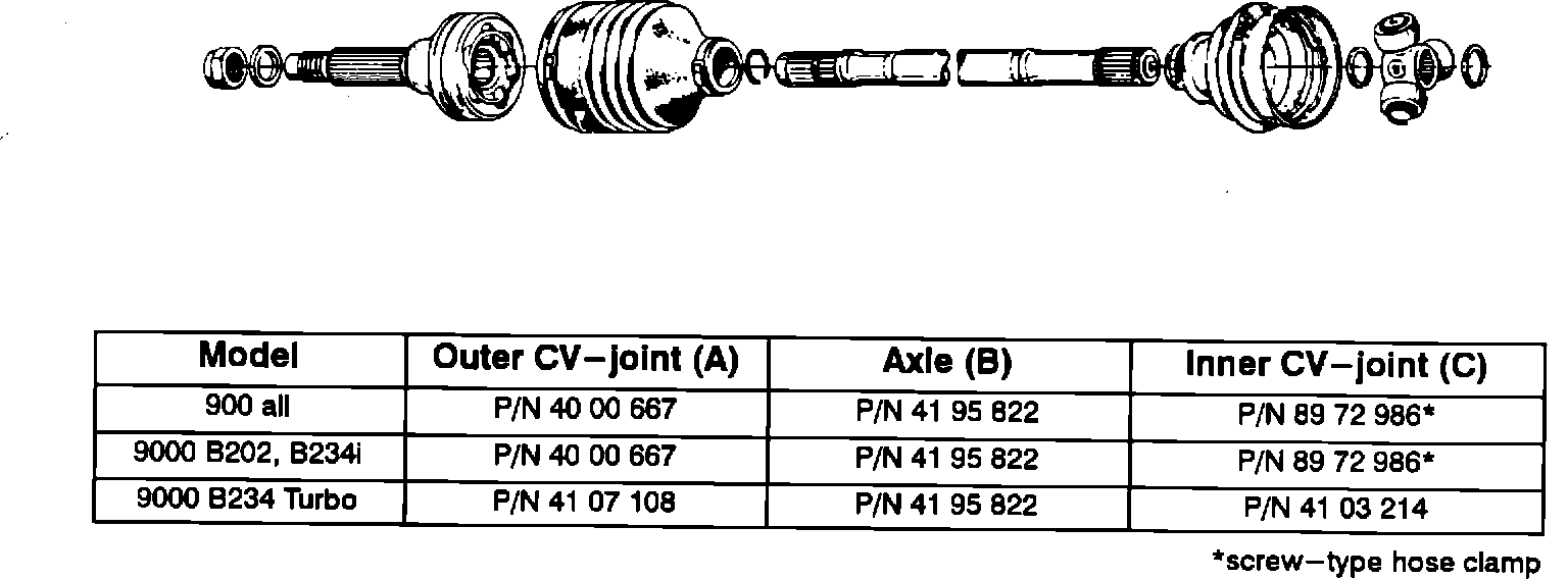 New clamps for securing the rubber boots to the CV joints and axles have been introduced as spare parts. These clamps should be used when performing repair procedures in which a boot must be removed from a CV-joint and/or axle. The clamps feature a single ear that is crimped closed. They are designed to be used only once and should be discarded and replaced if removed from a vehicle.