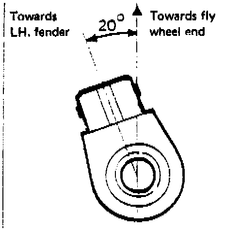 Install the knock detector so that the connection of the wiring harness is pointing forwards and turned 20° to the left.
