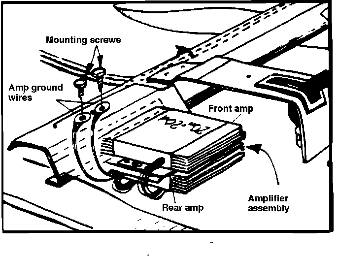 3. Using the small ring terminals and star washer provided, ground the two amplifier grounds separately to the two amplifier bracket mounting screws.