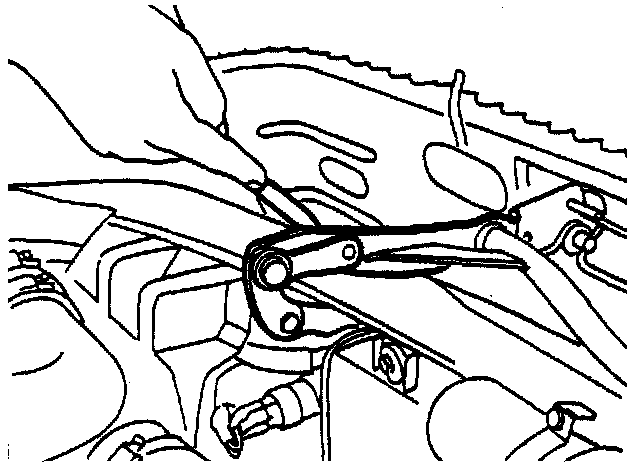 1. Remove the bonnet by releasing the links at each hinge, and disconnect the hose for the washers. Place the bonnet securely, such as by leaning it against a wall, to prevent it from being damaged.