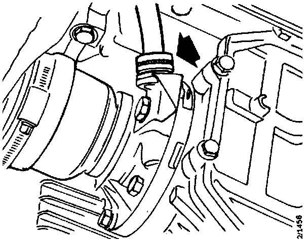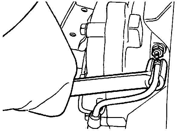 13. Release the pipe coupling on the delivery side of the steering servo pump. Plug the pipe and avoid spilling oil on the engine mounting.
