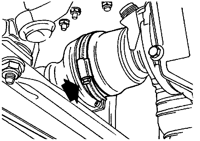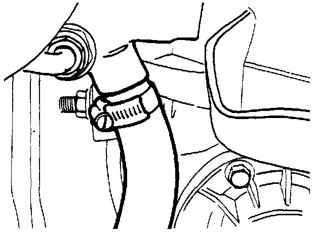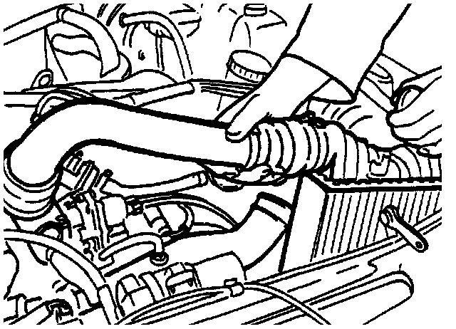 15. Connect the radiator hose to the bottom of the radiator and connect the hydraulic line to the clutch slave cylinder.