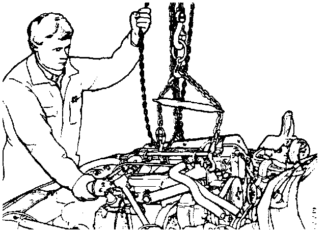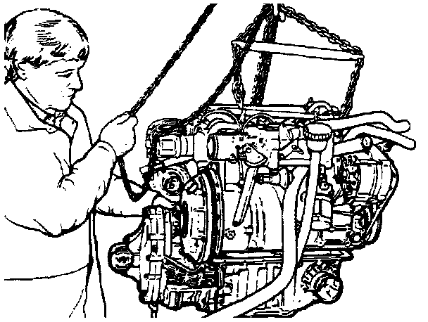 2. Suspend the power unit from the lifting yoke so that the front engine mounting is somewhat lower than the rear mountings.