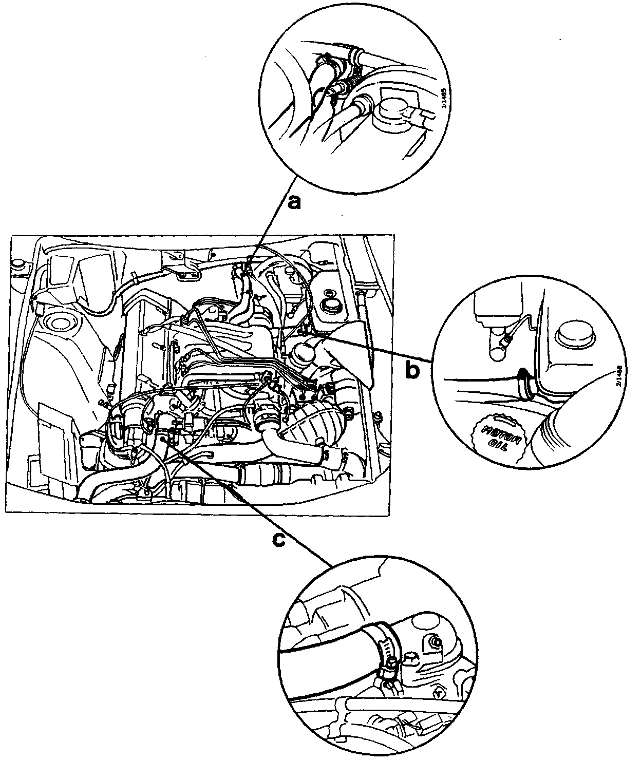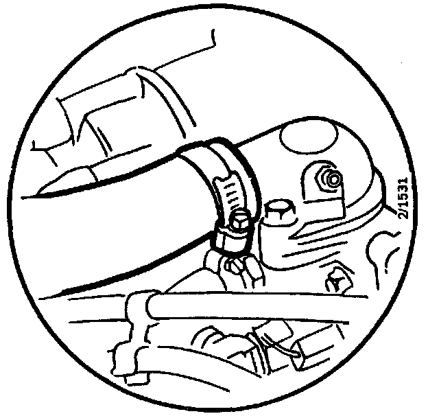 c) Disconnect the fuel hoses from the control pressure regulator. Use two spanners. Carburettor engine: Disconnect the fuel hoses from the fuel pump and disconnect the return line.