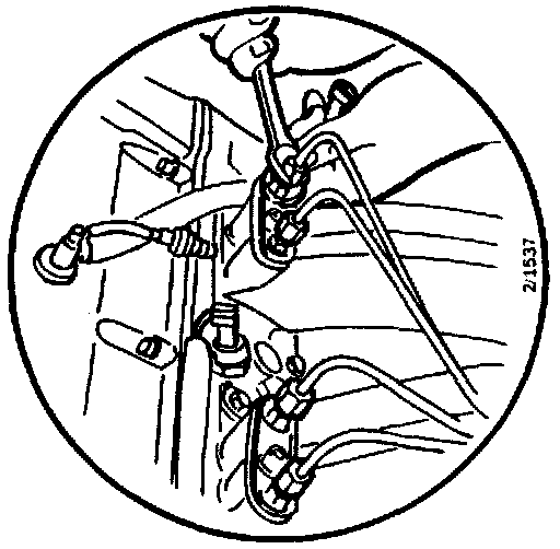 f) Disconnect the fuel pipes from the fuel injection valves. Use two spanners.