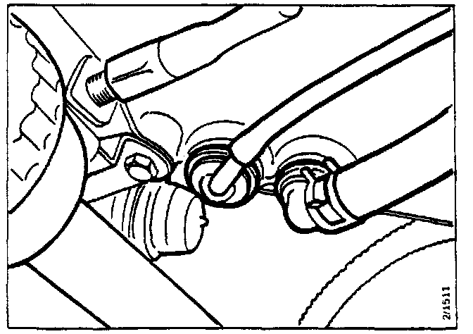 27. Disconnect the hydraulic hose from the slave cylinder. Use tool 83 935 Plug the hose.
