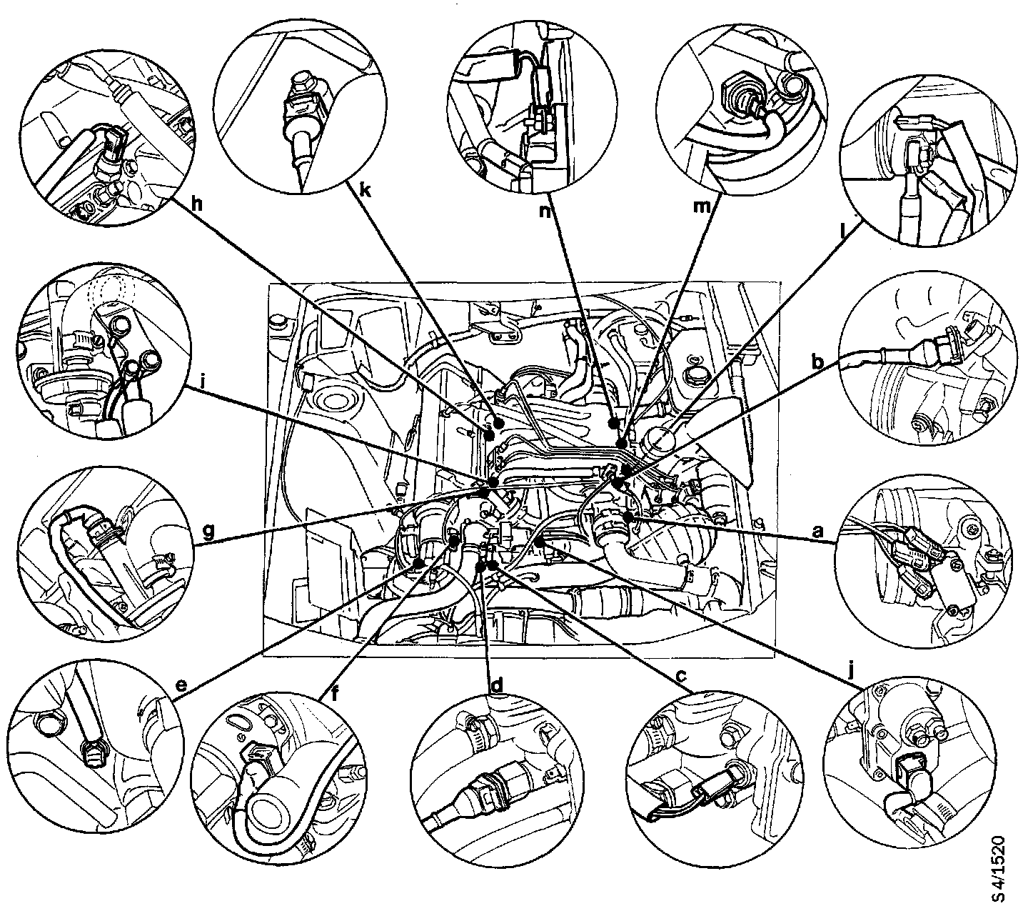 31. Separate the Lamda sensor cable at the connector above the right-hand wheel housing. Release the clip at the wheel housing and lay the cable on the engine.